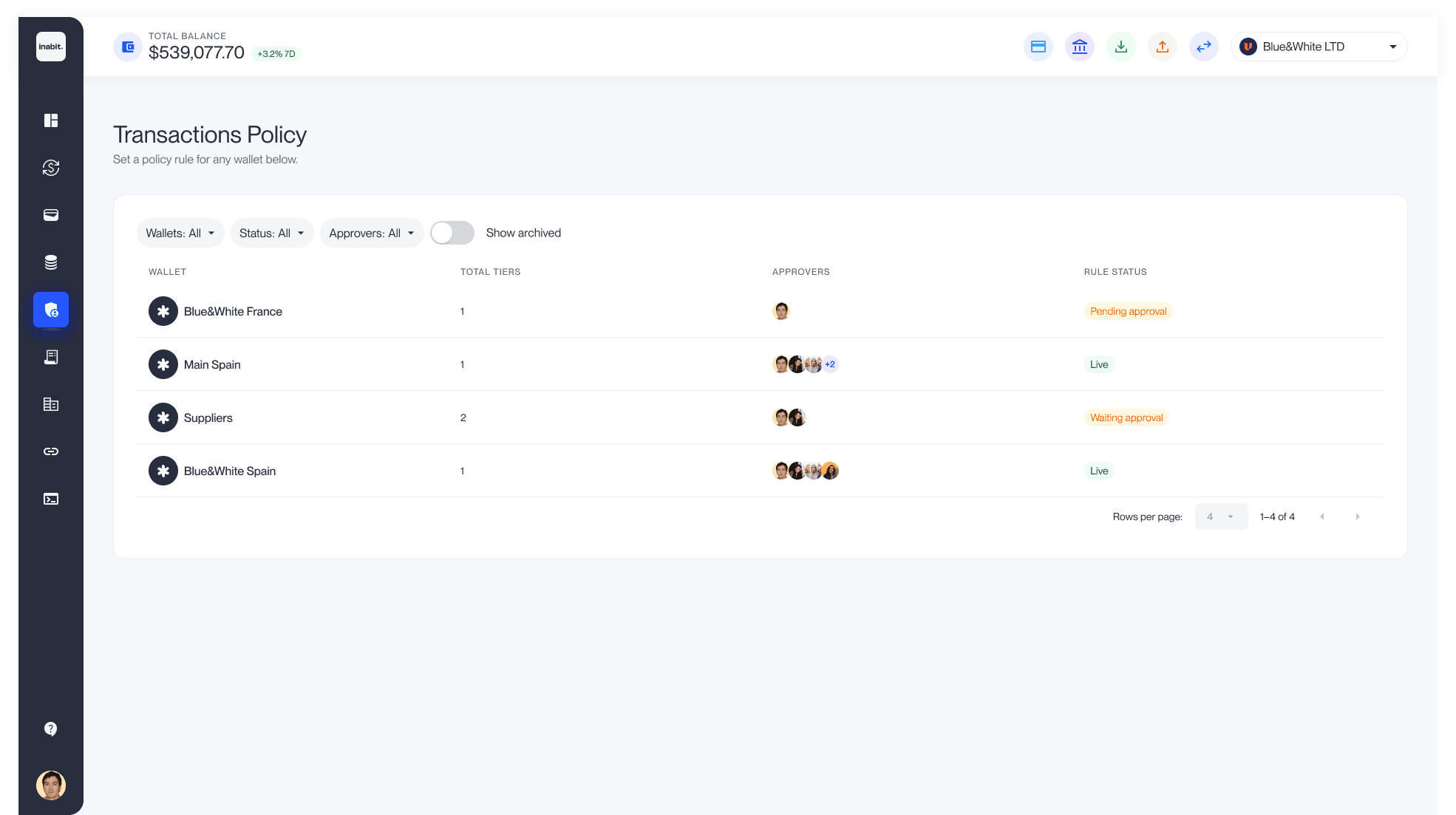 Empower your business with advanced policy controls, multi-user workflows, and robust transaction governance tools.